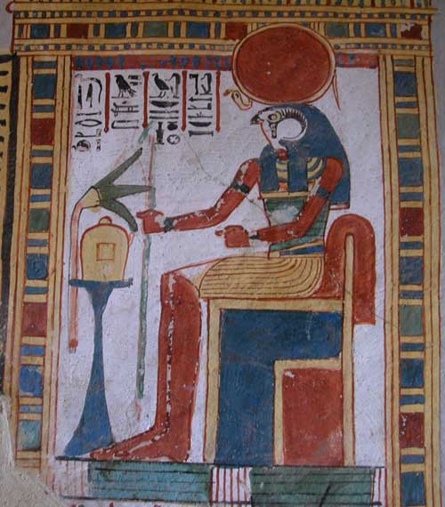 Horus: Dios del cielo; hijo de Osiris y de Isis y esposo de Hator. La mayoría de las veces aparece representado como un halcón o como un hombre con cabeza de halcón.